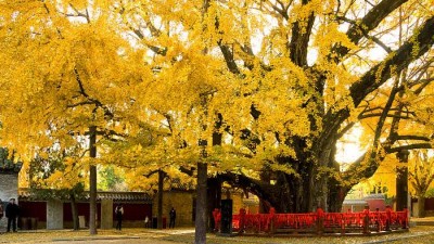 红枫染天 黄金铺地——身边深秋美景